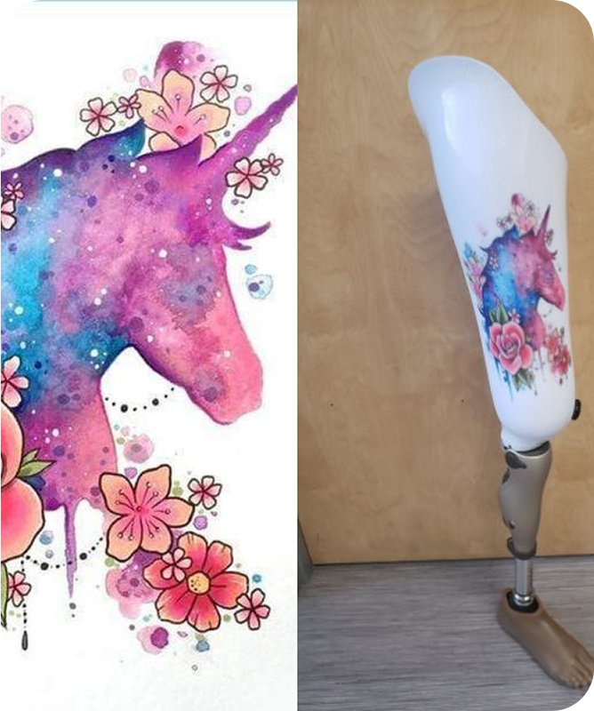 Our unique processes allow us to incorporate any image to prosthetic devices. We ask that a hi-resolution image 1080 DPI or higher to be submitted to us. We can then size appropriately without image distortion.